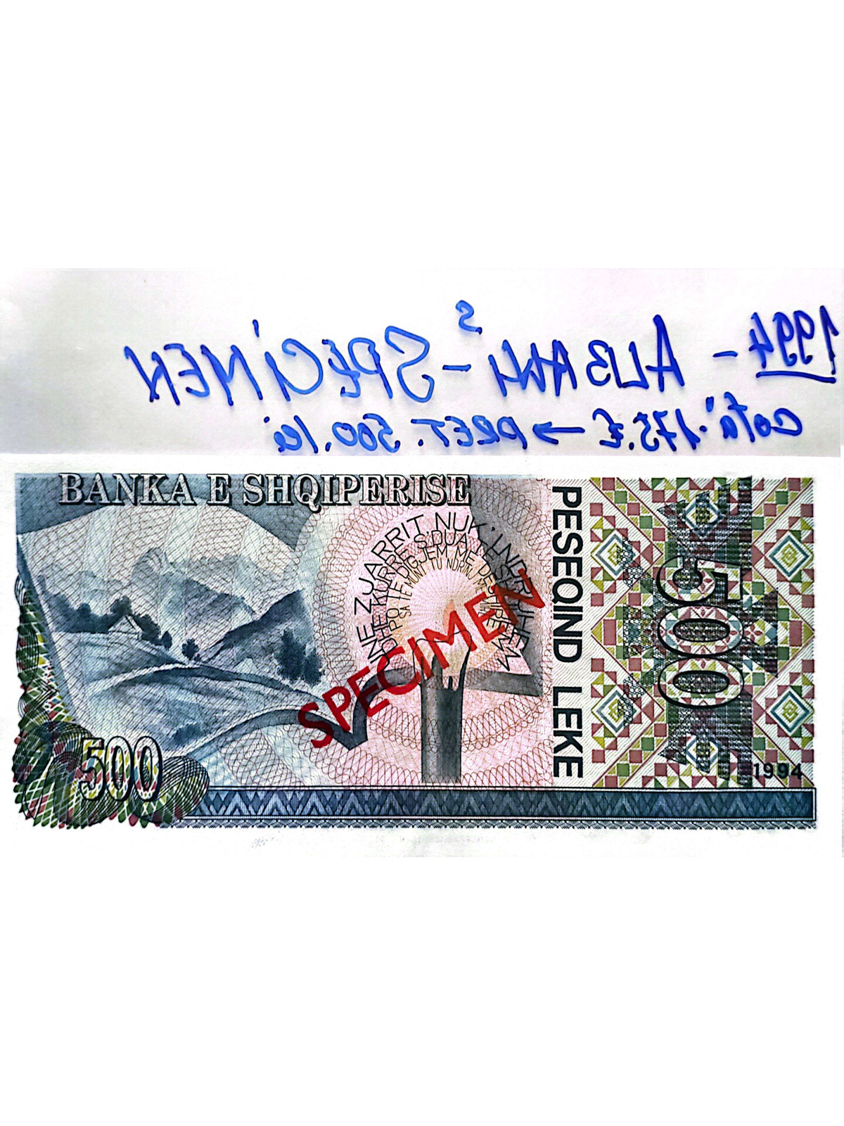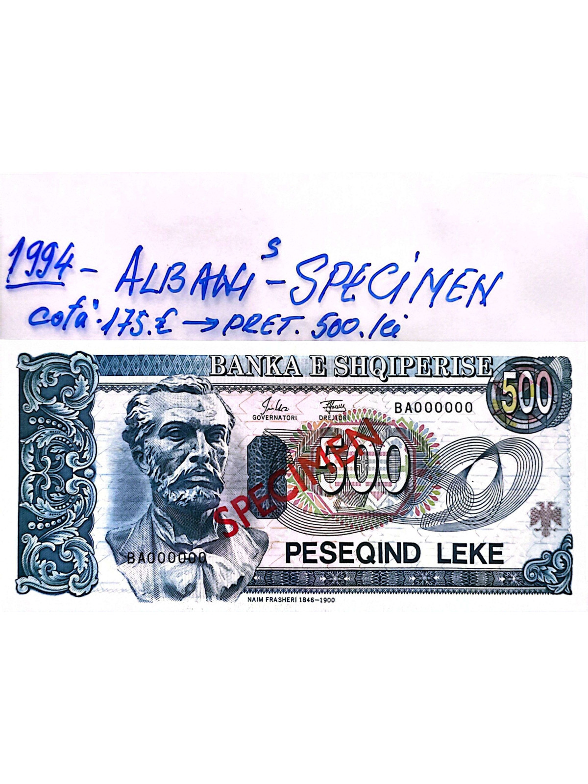 Banconta de colectie SPECIMEN 500 PESEQIND LEKE ALBANIA UNC